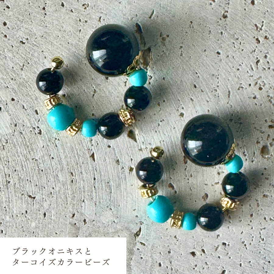ブラックオニキスとターコイズカラービーズのビューティーカフ です。