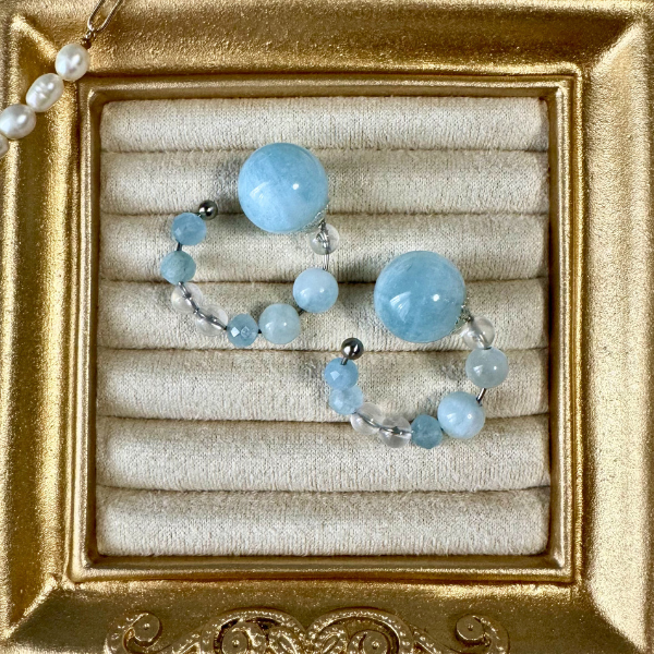 【1点限定】マリー・アントワネットの気高さを纏う、アクアマリンと天然水晶のビューティーカフ
