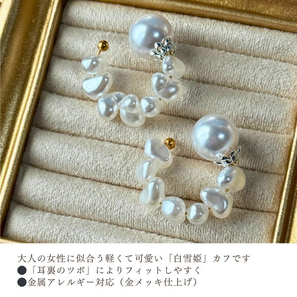 大人の女性のための軽やかイヤーカフ『白雪姫』カフ。
