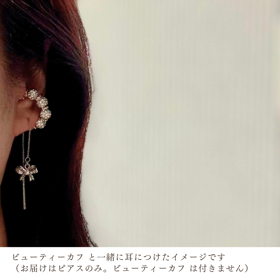 シルバーリボン|カフに似合うロングピアス