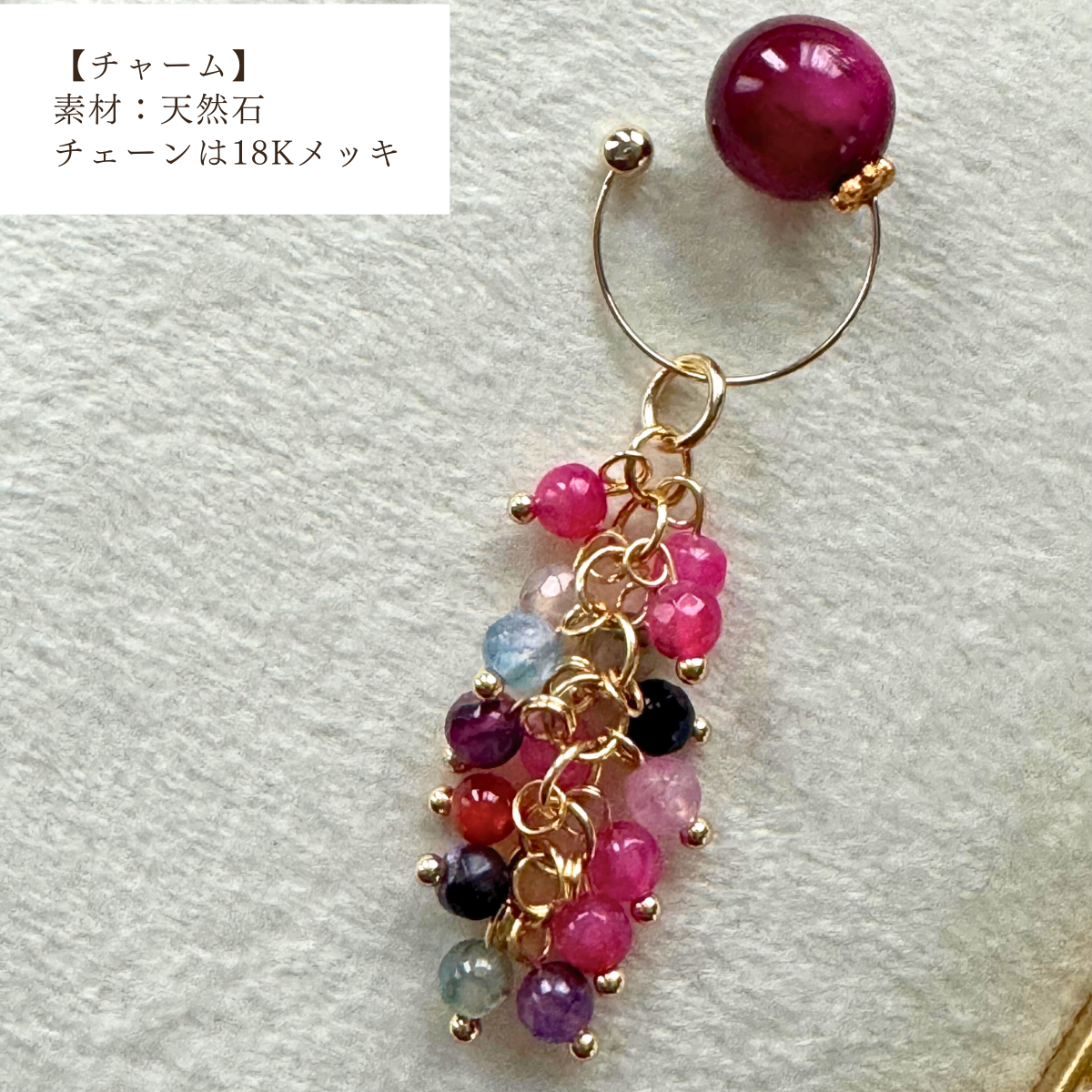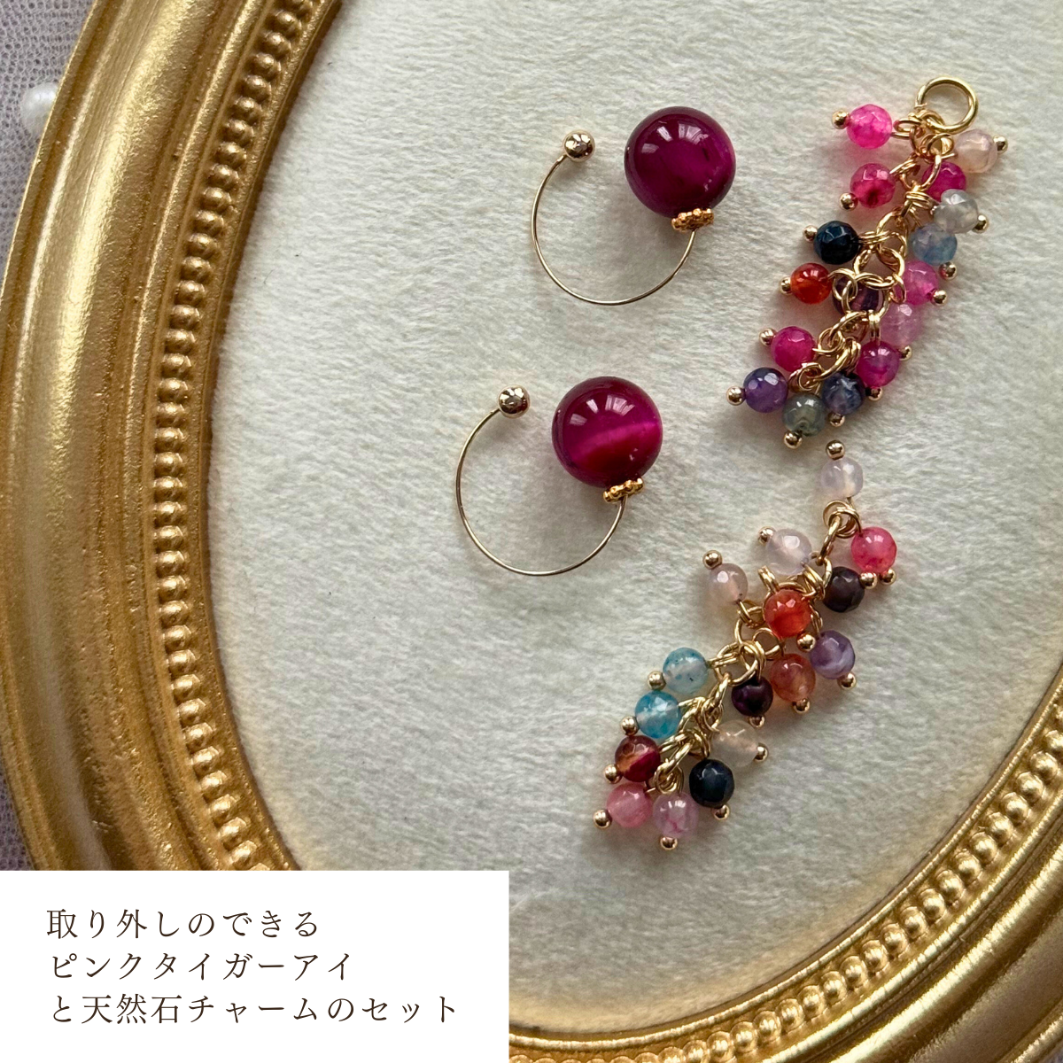 ピンクタイガーアイ ビューティーカフ(チャーム付き) は、華やかさと上品さを兼ね備えたアクセサリー。